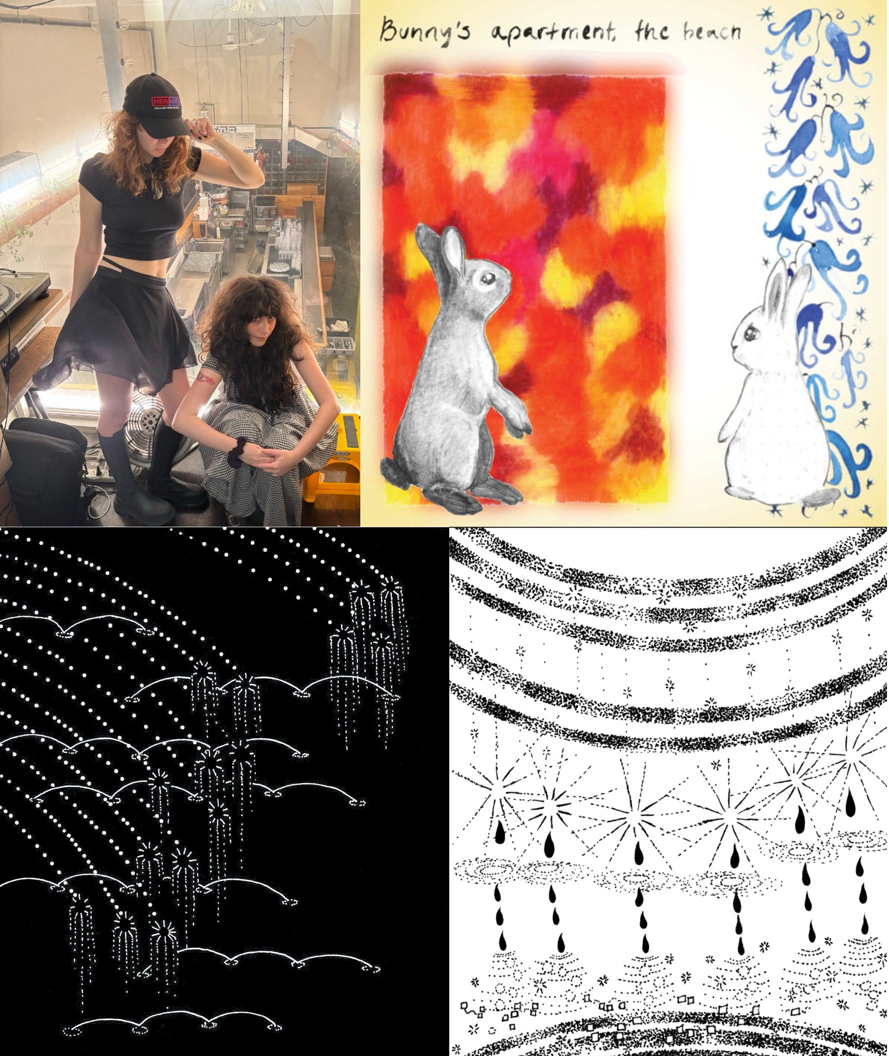 On September 20, 2025, her first full-length album, ‘Bunny’s apartment, the beach’ was released by Interzone Editions. Each cassette includes graphic score transcriptions by Phoenix Reign Herring, housed in 4.25” × 5.25” glassine envelopes. The cassette and digital versions can be found at interzoneeditions.bandcamp.com.